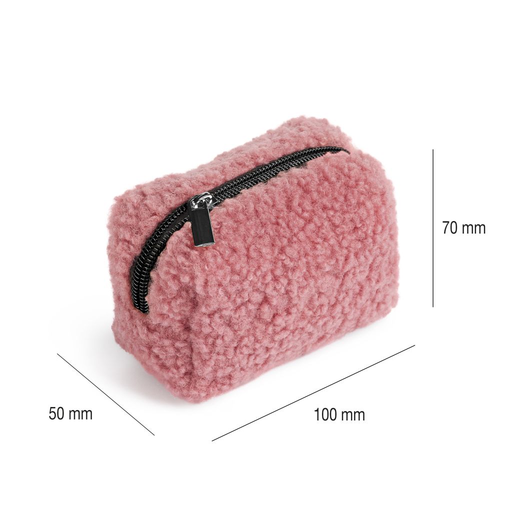 Compact mini wallet for storing coins with a zip. When you want to give someone something, this mini wallet for coins is an ideal gift because it is an indispensable part of our everyday life. Material: Polyester with plush effect. Dimension: 100x50x70mm.